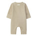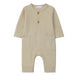 Babypakje van 100% biologisch katoenen jersey met een gebreide uitstraling en een zachte, warme touch. Voorzien van functionele voorzakken en mouwen die als handschoentjes gebruikt kunnen worden. Sluiting aan de voorkant met houten Laranjinha knoopjes en verborgen drukknoopjes aan de voorkant en tussen de beentjes.