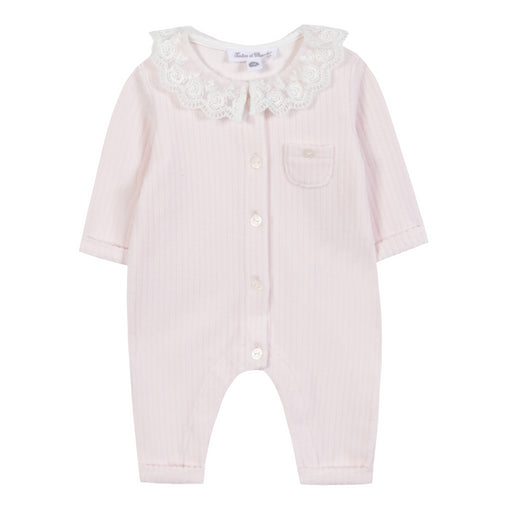 Tartine et ChocolatDeze lange jumpsuit voor pasgeboren meisjes in zachtroze is gemaakt van zacht velours. Het valt op door de geplooide kanten kraag, die een delicate...