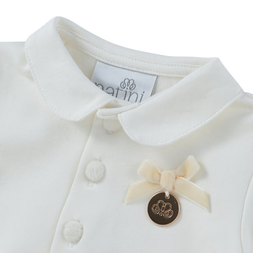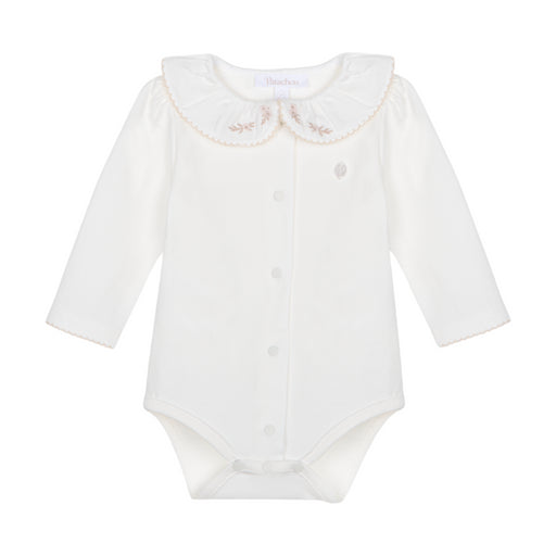 PatachouLief en verfijnd ecru rompertje met kraagje van PatachouKleed je kleintje in pure elegantie met dit schattige ecru rompertje met lange mouwen van P...