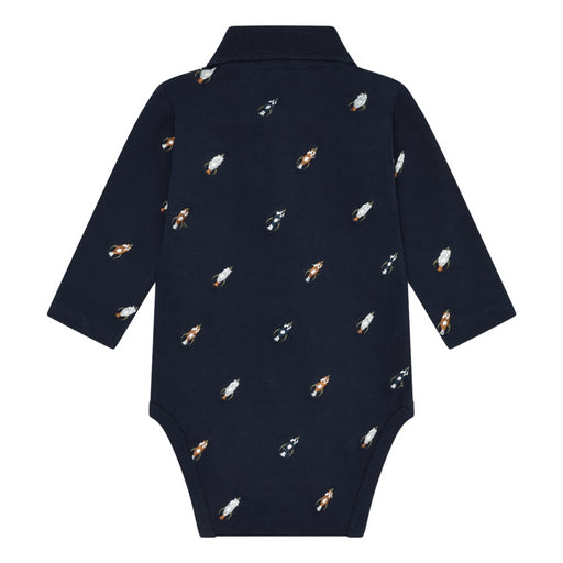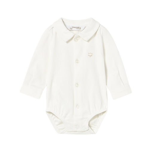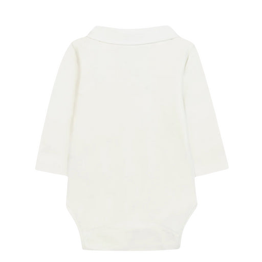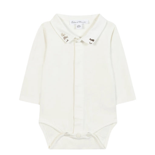 Tartine et ChocolatDeze zachte ecru body is ontworpen om je babyjongen vanaf zijn eerste momenten in comfort te hullen. De puntige kraag, subtiel geborduurd met een k...