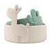 Je kindje zal het heerlijk vinden om snacks te delen met Lalee en Birdee – al moet je wel uitkijken, want Lalee heeft een neusje voor zoetigheid! In de grote zandkleurige kom kijkt Lalee nieuwsgierig over de rand, terwijl Birdee en een cactus uit het kleinere groene kommetje piepen.