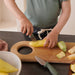 Het kindermes met een roestvrijstalen lemmet snijdt moeiteloos door fruit en groenten – en is toch veilig in gebruik voor kinderen. De antislip handgreep van siliconen zorgt voor een stevige en veilige grip.