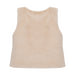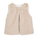 Dit lieve beige bodywarmpje is gemaakt van heerlijk zachte synthetische bontstof en versierd met fijne bloemenborduursels op het bovenste deel. Het vestje voelt knus en comfortabel aan – perfect om je kleintje warm én stijlvol te houden op frisse dagen.