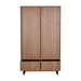 De Kyo tweedeurskast is een harmonieuze mix van vorm en functie, ontworpen in dezelfde strakke lijnen en warme houttinten als de rest van de collectie. Het ingetogen ontwerp met onzichtbare grepen en push-to-open systeem zorgt voor een serene, opgeruimde uitstraling.
