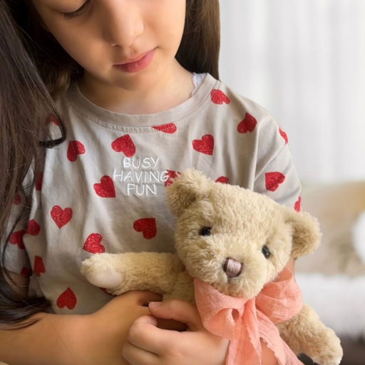 MarshyellowEen pluchen konijntje zo zacht als een gefluisterd geheim — met een wolkzacht, romig beige vachtje en een warme chocoladebruine strik die direct ee...