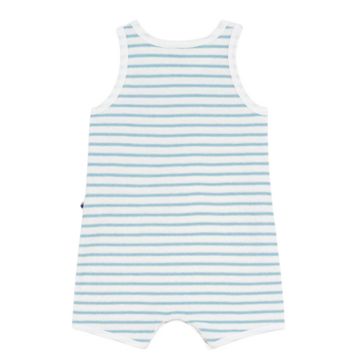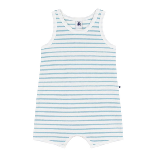 Petit BateauPetit Bateau - Korte babycombi zonder mouwen in boucléfluweel met streepjes