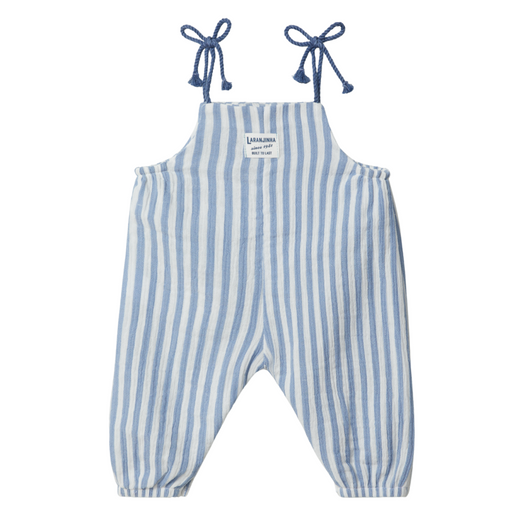 LaranjinhaTuinbroek van 100% katoenen mousseline met gestreepte print. Verstelbare trekkoordbandjes en elastiek in de borst voor extra comfort. Sluit met dr...