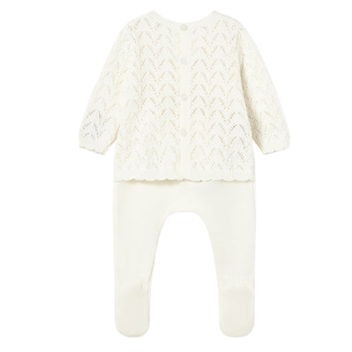 Tartine et ChocolatVoor de eerste momenten van je baby hult deze geboorteset je kleintje in rustgevende zachtheid. Het bovenstuk, gebreid in gerstekorrelsteek, biedt ...