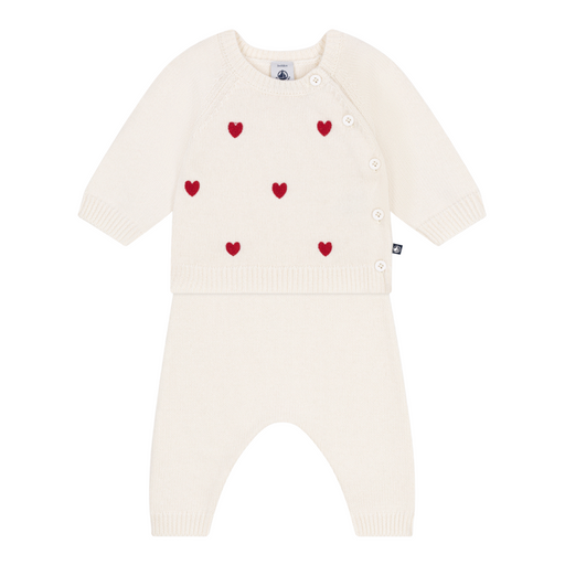 Alle gegevens bekijkenPetit Bateau - Tweedelig gebreid babysetje met geborduurde hartjes