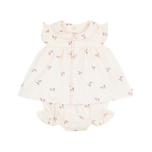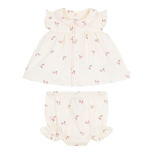 Alle gegevens bekijkenPetit Bateau - Tweedelig katoenen babysetje met een bloesje en een pofbroekje met bloemenprint