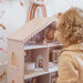 Stap in een wereld van fantasierijk spel met dit moderne houten poppenhuis, ontworpen om de verbeelding van je kleintje te prikkelen en te inspireren. Met elegante accenten van rotan raamdetails aan de zijkanten is dit poppenhuis niet alleen een speeltje, maar ook een prachtig decorstuk dat charme toevoegt aan elke speelkamer of kinderkamer.