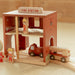 De alarmbel gaat af! Deze houten brandweerkazerne heeft alles wat je nodig hebt voor een spannende reddingsactie. Open de deuren, glijd via de brandweerpaal naar beneden en spring in de brandweerwagen. Inclusief brandweermannen, vlammen en een brandende prullenbak. De deuren van de kazerne kunnen open, zodat je snel kunt uitrukken. Combineer deze set met de houten treinbaan XL voor nóg meer avontuur. Wie red jij vandaag?