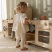 Let op kleine chef-koks! Dit prachtige houten kookstation is perfect voor het bereiden van de heerlijkste gerechten. Bak een taart in de oven of verse groenten op het fornuis. De set bestaat uit twee pannen, een ovenwant en een pannenlap en is voorzien van geïllustreerde knoppen voor extra realisme. Combineer het kookstation met de koelkast of met de wasmachine en vaatwasser set om een complete speelgoedkeuken te creëren. Wat staat er vandaag op het menu?