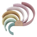 Stapel, sorteer en bouw! Met deze regenboogstapelaar in de tinten roze, geel en groen zijn er talloze creatieve manieren om te spelen. Gebruik hem niet alleen om een regenboog te bouwen, maar ook om sculpturen te maken of tunnels te creëren voor treinen en auto's. Laat je fantasie de vrije loop en ontdek eindeloze ideeën om met de bogen te spelen. Deze houten regenboogstapelaar stimuleert fantasierijk spel en bevordert de fijne motoriek. Je zult versteld staan van de veelzijdigheid van dit speelgoed én hoe prachtig het staat in de kinderkamer.