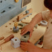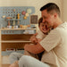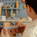 Laten we het maken! Wat je ook bedenkt, met deze werkbank kun je alles bouwen. Pak je gereedschap en begin met klussen. Creëer een auto, een motor of maak een eigen creatie door de losse onderdelen aan elkaar te verbinden. Peuters kopiëren maar al te graag hun ouders. Met deze werkbank kunnen ze heerlijk timmeren, schroeven en repareren, net als volwassenen! Ze zullen uren zoet zijn met het maken van een creatie om het vervolgens weer uit elkaar te halen en opnieuw te beginnen. De werkbank stimuleert rollenspel, creativiteit, motorische vaardigheden en verbeeldingskracht. De werkbank heeft een opbergrek met 4 tandwielen, een krijtbord voor de to-do lijst, twee opbergvakjes en een bankschroef. De set bestaat daarnaast uit 55 onderdelen zoals bouten en moeren, schroeven, panelen en wielen. Maar natuurlijk ook essentiële gereedschappen zoals een hamer, zaag, schroevendraaier, waterpas, duimstok en bankschroef. De stoere houten werkbank in moderne kleuren creëert een mooie speelruimte in een kinderkamer maar staat ook prachtig in de woonkamer. Combineer met de gereedschapskist voor nog meer speelplezier. |