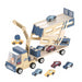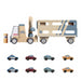 Op twee niveaus biedt de transporter plek voor maar liefst acht kleine auto’s. Met een paar simpele handelingen verandert de houten transporter in een 103 centimeter lange, dubbele racebaan waar kinderen stoere snelheidswedstrijden houden.