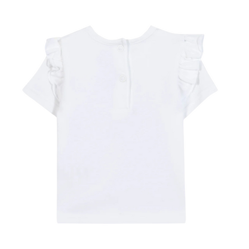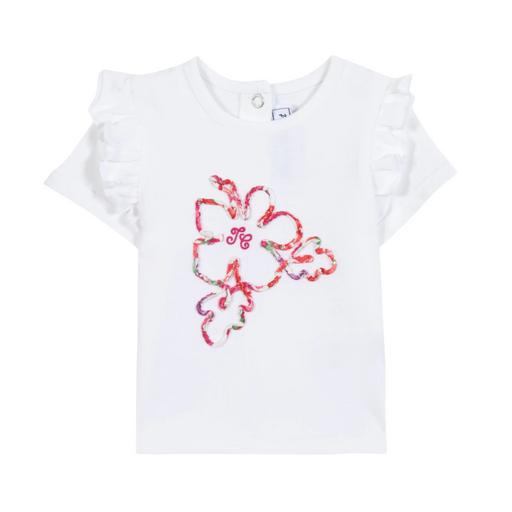 Tartine et ChocolatDit witte T-shirt met korte mouwen is ideaal voor een zonnig uitje! Met zijn ruches aan de mouwinzetten en de hibiscusillustratie in Liberty-stof i...