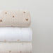 Swaddle gemaakt van zacht ecologisch mousseline katoen. De randen zijn afgewerkt met een mooie stiklijn. Om je baby af te drogen na het badderen, als onderlegger in wieg, kinderwagen en ledikant. Multi functioneel en onmisbaar.