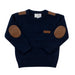 Deze donkerblauw gebreide trui is afgewerkt met stijlvolle lederen details op de schouders, lederen ellebooglappen en een lederen natini logo.