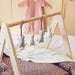 Een baby kan zich uren vermaken met deze mooie babygym. Aan de babygym kun je de bijpassende speeltjes hangen. De kleurtjes en bewegingen vindt een baby fascinerend om te zien. Onder de houten babygym kun je een kleedje leggen zodat jouw baby comfortabel ligt. Mooie houten babygym van Jollein. De babygym is gemaakt van 100% ply wood en heeft een afmeting van 53x64x51 cm. De houten babygym van Jollein wordt exclusief speeltjes geleverd, deze bijpassende speeltjes zijn los verkrijgbaar. De houten babygym is geschikt voor baby's vanaf twee maanden. Je vindt de babygym in de houten speelgoed collectie van Jollein. Makkelijk in elkaar te zetten. Dit product kan afgenomen worden met een vochtige doek. De babygym kan niet in de wasmachine of droger.